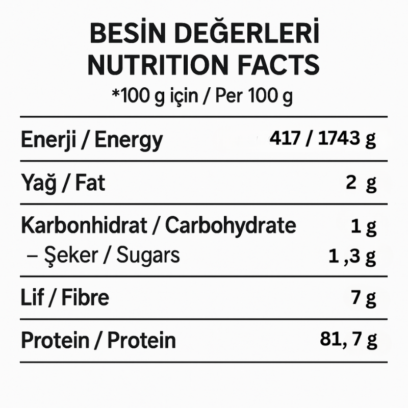 %100 Bitkisel Protein Kaynağı (Bezelyeden elde edilmiştir)