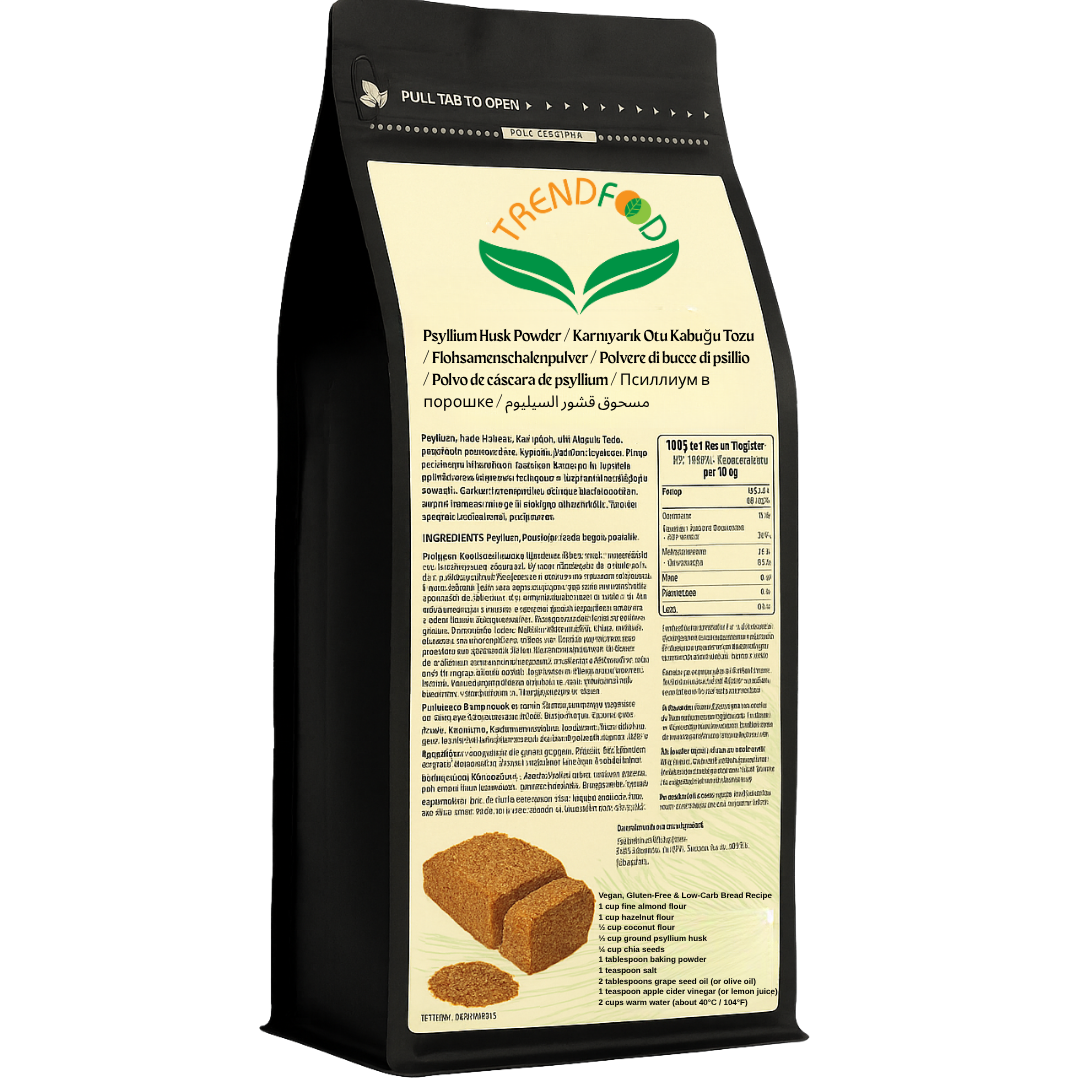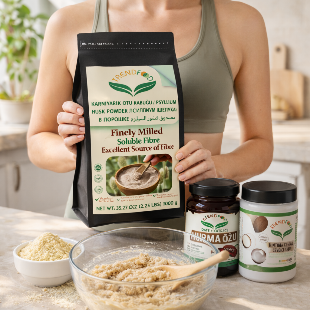Trend Food psyllium husk powder, %100 saf ve katkısız yapısıyla glutensiz tariflerde doğal kıvam verici olarak öne çıkar.