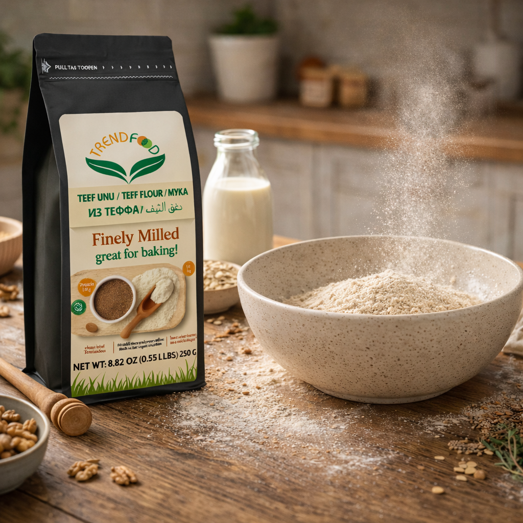 Trend Food’un özenle seçilmiş %100 doğal Teff Unu, hem sağlıklı beslenmeyi yaşam biçimi haline getirenler hem de glutensiz ve temiz içerikli ürün arayanlar için özel olarak üretilmiştir.