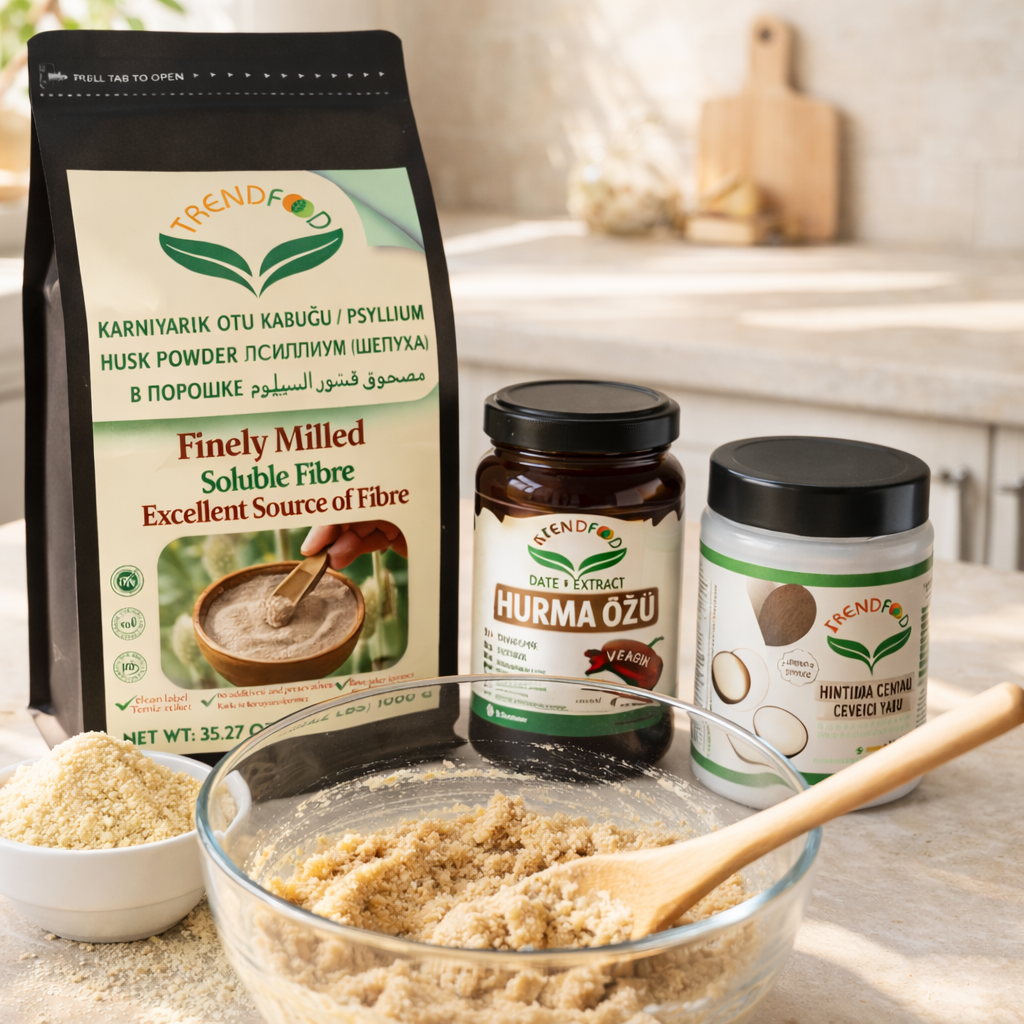 Trend Food psyllium husk powder, %100 saf ve katkısız yapısıyla glutensiz tariflerde doğal kıvam verici olarak öne çıkar.
